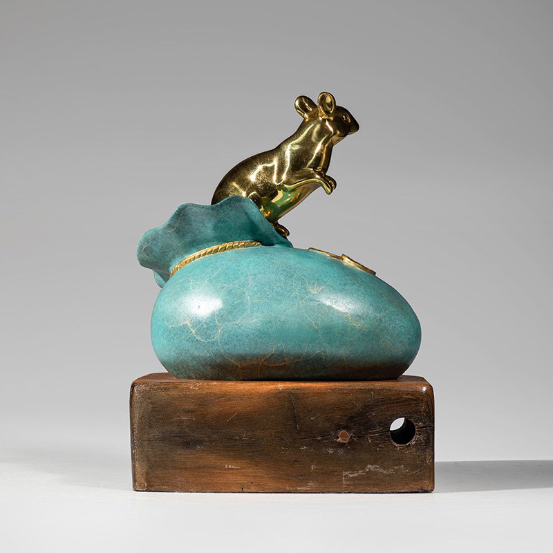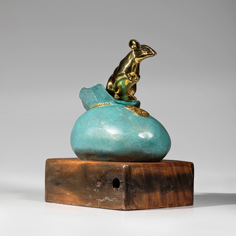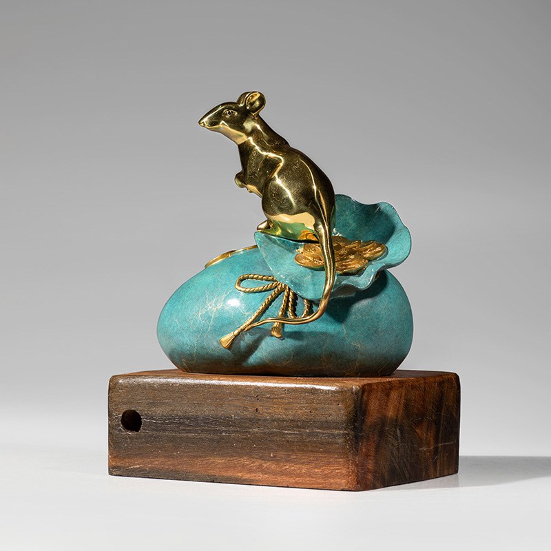 铜鼠摆件,寓意招财进宝、财源滚滚,国标黄铜铸造,高温着色,原创设计,精致典雅