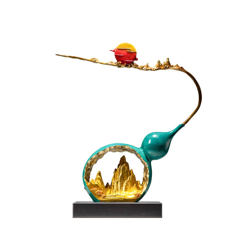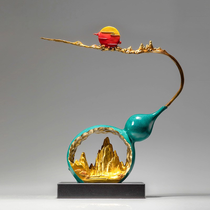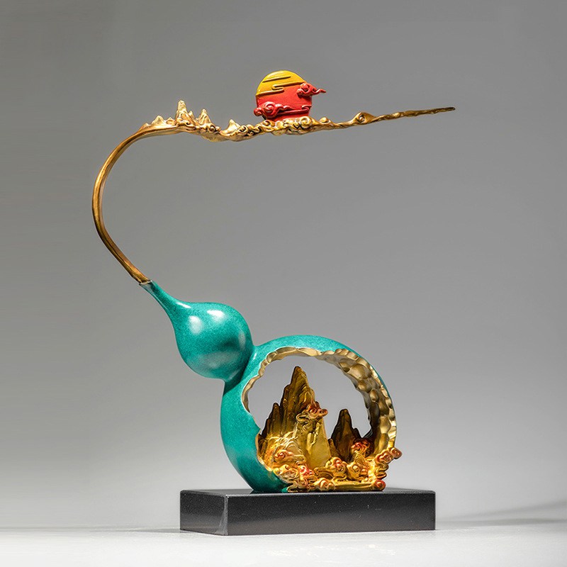 福星高照葫芦黄铜摆件,采用失蜡铸铜工艺与高温着色处理,造型融入葫芦、山水与祥云元素,寓意福运绵长、吉祥纳瑞。适合客厅、书房、办公室陈设及高端商务礼品选择。