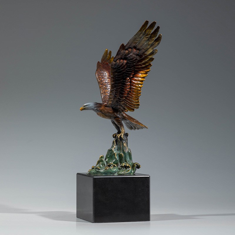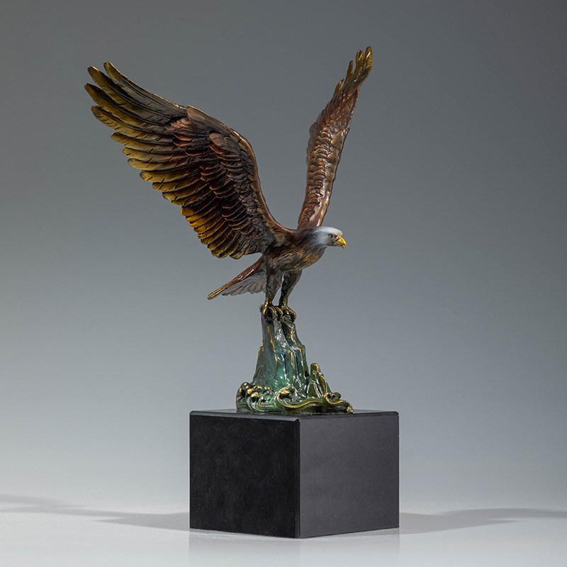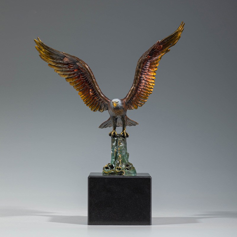 这款大鹏展翅老鹰黄铜摆件采用失蜡铸铜工艺,高温着色,造型威猛大气,象征力量、成功与腾飞。适合办公室、书房、客厅摆放,亦是高端商务馈赠与收藏佳品。