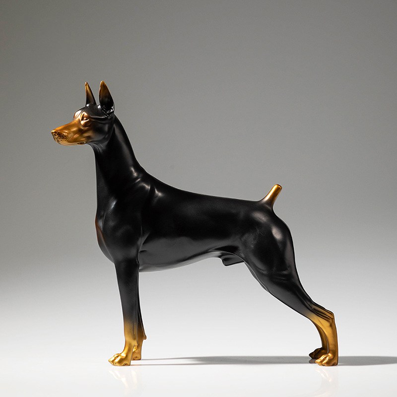 这款站立杜宾犬黄铜狗工艺品摆件采用国标H65黄铜,失蜡铸铜工艺结合高温着色,线条利落,造型挺拔,尽显忠诚与守护之美。适合家居装饰、办公陈设及高端礼赠收藏。